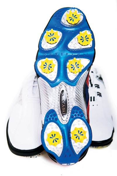 自1989年起这就是个代表职业选手的标志,DryJoys已将特色带入另个稳定的PODS科技。独家的真皮防水鞋面与特别弹性OptiFlex弧沟所包覆的7处独立稳定钉座。所得到的就是突破性的弹性效果。稳定却拥有最极致的弹性,在挥杆的动作中,S多向大底可以提供任何重心转移时的稳定力量支撑。