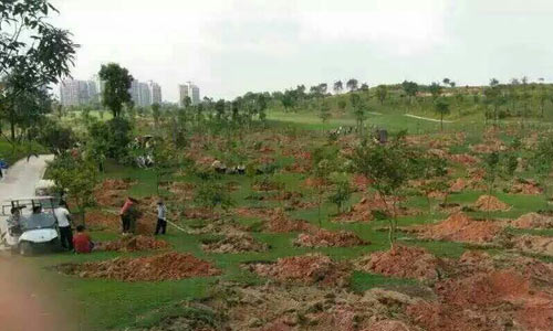从网友爆料的图片来看,球场的球道和果岭几乎已被铲平殆尽,并且已经有被种上树木的迹象。