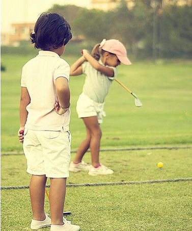 现在有不少父母周末带着孩子一起去近郊的高尔夫球场练球。小朋友们在球场上让大脑充分有氧呼吸,对提高记忆力很有帮助。同时,高尔夫球场是一块相对优雅高端的运动场,家长们不会担心孩子在球场上交到不好的朋友。