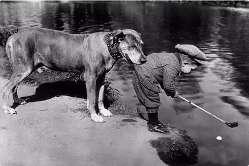 汪星人与小主人的完美配合,拍摄于1920年: