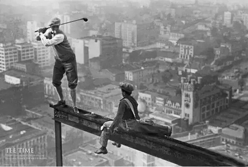 1932年,一位球员在纽约摩天大楼上挥杆: