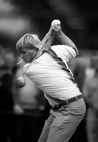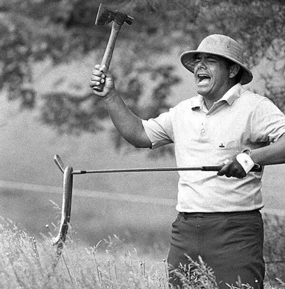 1971年英国公开赛练习轮,李-特雷维诺在长草中抓到一只蛇: