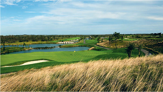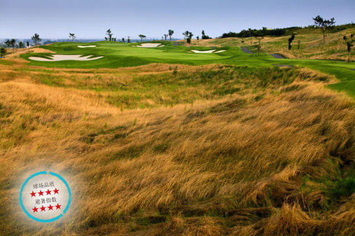 石岛湾球场的设计结合了女性柔美之姿,碧绿的球道与碧海青山浑然一体。其球道的设计完全融合自然地形,远远望去显得起伏有致,犹如曲线优美的少女身姿。而面积巨大的果岭和沙坑则进一步提升了球场的竞技性。石岛湾球场有三大难点。其一,18个果岭个个面积巨大,最小的也有700平方米左右;其二,石岛湾球场常有海风伴随,善于控制击球落点才能在这里尝到甜头;其三,起伏的球道会带来一定视觉差和无法预知的上下坡站位。总之,这是一座有小惩罚也有大奖赏的度假型球场。