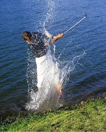 高尔夫的“凶险”在于,它会“引诱”你去找回你的小白球。有时候,太想救球了,你可能会冲进水障碍区。