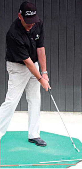 其次,开始下面的练习。两根棍子分别放在11点钟和12点钟方向(相对于目标线,如图所示)。