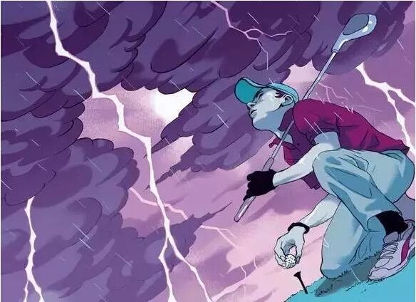 在雨天打球是一回事,但在电闪雷鸣中打球却是另一回事。当闪电发生时,你的球杆(包括你自己可能是球场上的最高点,除非周围有树)会成为雷击的目标。不要去冒险,放下球杆把它们蒙好,并马上离开。
