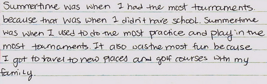 “因为暑期不用上学,在夏天我常常会进行大量的训练,参加很多的赛事。夏日时光也是我最开心的日子,因为我会和家人一起去各地旅游,在不同的高尔夫球场打球。”