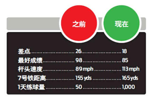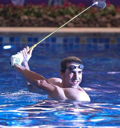 高尔夫成为了他的新目标。臂展2米的菲尔普斯,当时的挥杆幅度很大,节奏慵懒。差点26,目标是破百。尽管在泳池无人能敌,但是来到绿茵场,同样是旱鸭子,他遇到的挥杆问题和大多数球友一样。