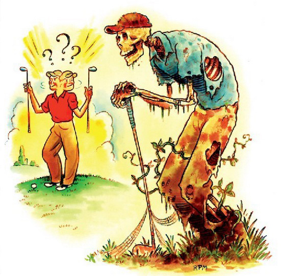 《高尔夫机器》,一本由霍马-凯利(Homer Kelley)撰写的书,1969年出版,它将挥杆细分成无数个元素,而每个元素包括3到10个参数,结果挥杆出现了无数种组合。这本书如此复杂,以至于一个人要接受指导才知道该如何阅读它。而准备学习它的学生不得不去找“Als”,也就是霍马-凯利模式的授权导师来教他们。霍马-凯利1983年去世,看上去是一个很有教养,充满善意的人,可是他的书成了膜拜的对象,十分不幸,孕育了盲目模仿的,“获得授权”的各式各样的书和老师。而这些书和老师除了将高尔夫运动搞复杂之外,再也不做别的了,因为只有这样,他们才能成为唯一的答案。