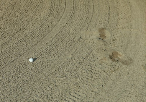 但是你还是有办法来感受一下沙子(在不违反规则的情况下):击球前,将双脚深深地捻进沙子里。