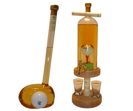 右边那款看起来比较有格调,颇像是书香世家会收藏的类型,竟然还有水龙头,哦不,酒龙头和两个酒杯,而且嵌入的高尔夫球——无论的品牌还是还可以随买家的喜好而定,实在是非常贴心。