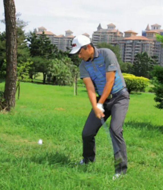 夏天雨水多,球场上粗草区的草总长得特别快,所以当球友错失果岭时,较容易面对深粗草区球位。当球整个被草叶覆盖,上果岭又没有足够的落球空间时,唯一能靠近旗竿的打法,就是高抛球了。