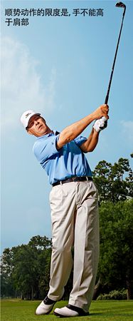 站位,球对准站位正中。感觉你的鼻子基本处于球的正上方,将稍多一点的体重移向左脚。完成以后,做出标准上杆、下杆动作,实现稳固触球,但顺势动作幅度要小,收杆时使球杆指向天空。重心置于前侧身体,减小顺势动作幅度,这两点能够帮助你轻松打出稳固的直线球。