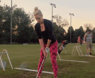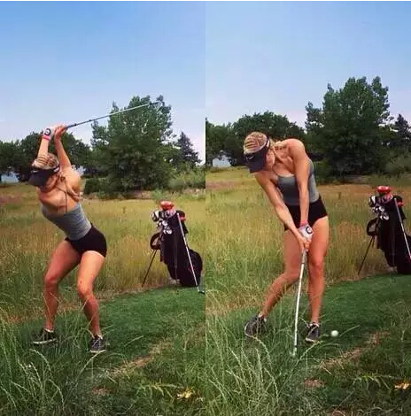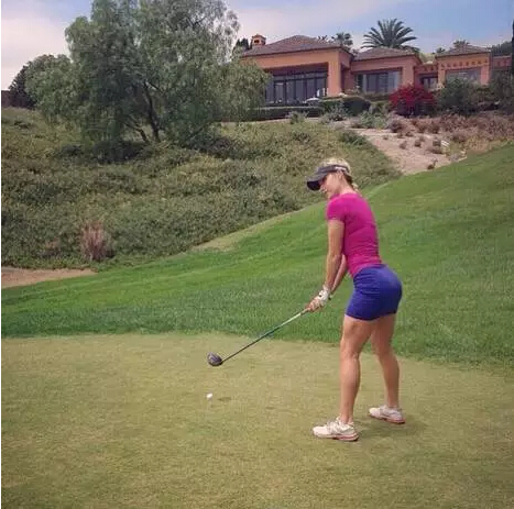 额!!虽然妹子的着装没有符合高尔夫服饰要求,但是人家打的相当专业呢——