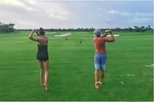 福勒和女友玩起了半裸挥杆,还有那些亲亲抱抱。