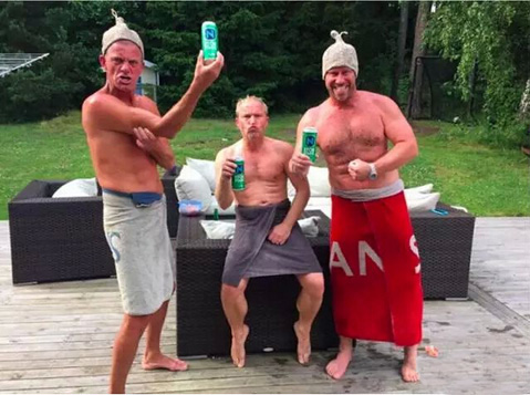 瑞典老帅哥帕尼维克和他的小伙伴喝冰镇啤酒,秀肌肉~