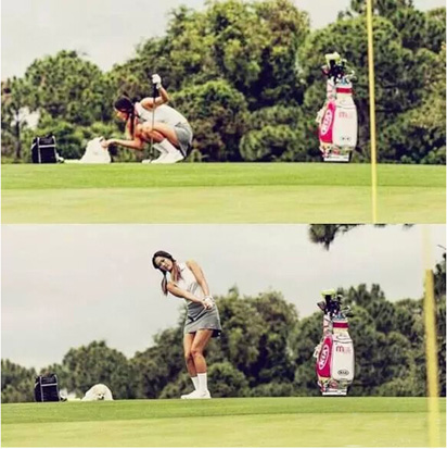 LPGA 美女球员宝拉-克里默秀蜜月海滩图。