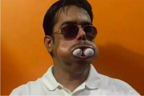 印度一个老师自称是世界上嘴巴最大的人,他可以含下5个高尔夫球。