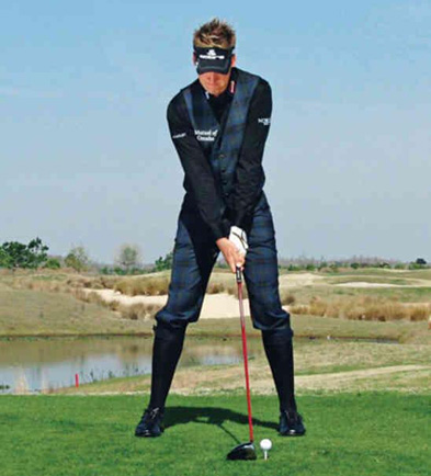 定位姿势很标准,看上去也很舒服,为挥杆触球做好了充分的准备。