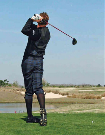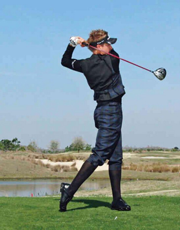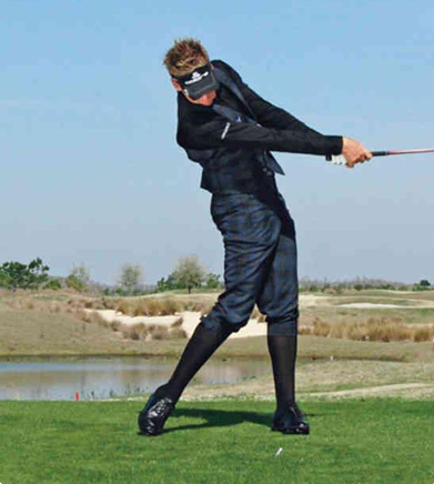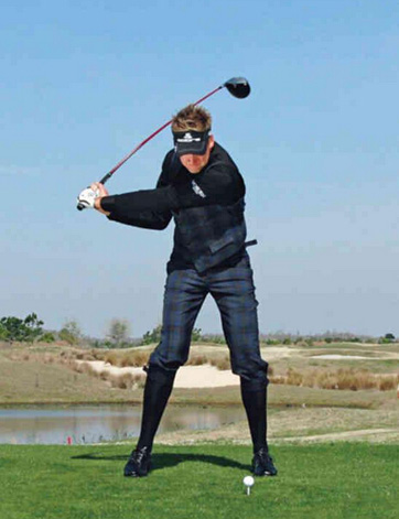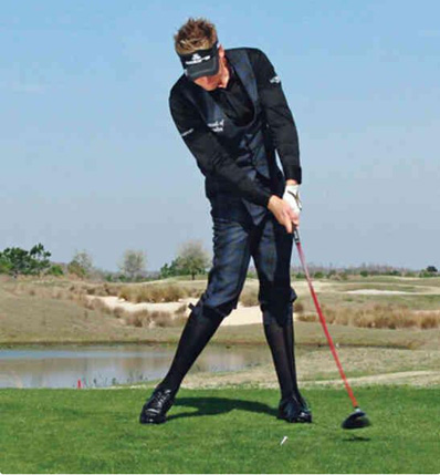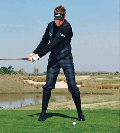 挥杆力量的关键:身体完全转动,蓄力于球后。