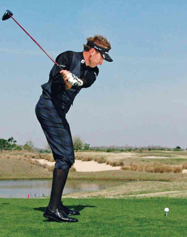 启动上杆过程中,保尔特的挥杆幅度很大,杆头离身体较远。