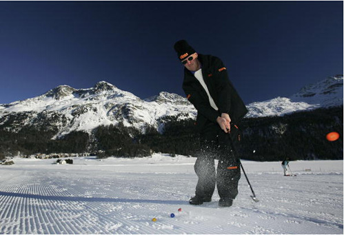 世界冰上高尔夫锦标赛每年都会在零下50摄氏度的格陵兰乌玛纳克举行。由于其位于北极圈以北500公里,参赛者还得处理冰川、冰山。