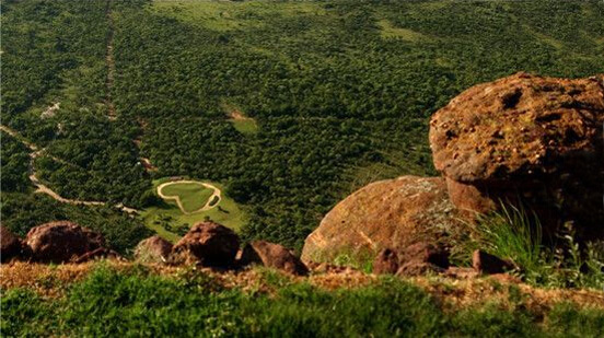 如果您想在南非的传奇高尔夫球场上完成第19洞的球,您必须乘直升机才能到达位于山顶的球座。山下的绿地呈非洲大陆的形状。