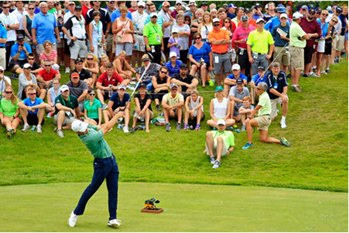此后一直是吉利斯领引比赛节凑,8号洞抓鸟,9号洞吞下柏忌。而乔丹直到6号洞才捉到小鸟,前九此后无建树,领先者成了追赶者。另外,扎克-约 翰逊在紧紧的咬住。而54洞第二名李明真4号洞吞下柏忌后,也渐渐开始发力,6、9两洞抓鸟,成绩也紧紧咬住。局面变成了老将吉利斯在前面奔跑,后面三人 狂追。这激烈争斗的场景,让现场观众也是惊呼不断。