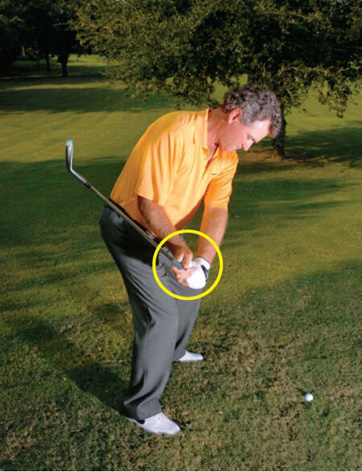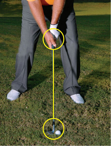 步骤三:冲击球过程中,应感觉头部处于球后方,触球时双手正对杆头。不要让双手超过杆头,那样会减少有效杆面倾角,使球低飞。