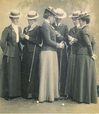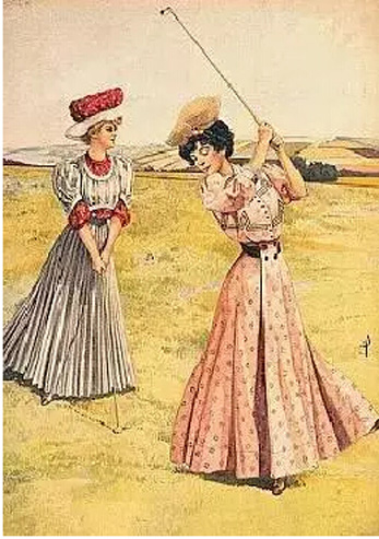 苏格兰斯图亚特王朝的玛丽女王是个虔诚的高尔夫爱好者,但她也只能在皇室和贵族之间掀起一小股高尔夫的热潮。在这些接受正统教育的绅士和淑女们心中深深笃信层层包裹的高贵,于是,厚重的罗裙、束胸内衣再加上紧绷绷的上衣,别说舒舒服服地挥杆了,即便把球打出去之后仰起头看看小白球的飞行方向,也得担心着假发会不会掉下来,失礼于人前,这样关乎礼仪的束缚也深深阻碍了高尔夫在女性群体中的发展。