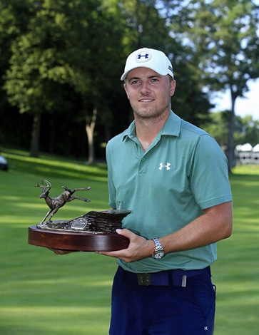 强鹿精英赛最后一轮在星期天的圣乔治高尔夫乡村俱乐部TPC鹿奔球场上演一幕精彩的争夺之战,美国47岁老将汤姆-吉利斯最后一轮有惊人的发挥,交出64 杆低于标准杆7杆的成绩,四轮总成绩264杆(66-65-69-64)与乔丹-斯皮思(71-64-61-68)成绩并列领先进入现场赛。最后,乔丹- 斯皮思第二洞骤死延长赛抓住老将吉利斯下水的错误把握机会赢得了本人第二个强鹿精英赛的胜利。他在英国公开赛之前最后一场热身赛中交出一份完美的答卷。
