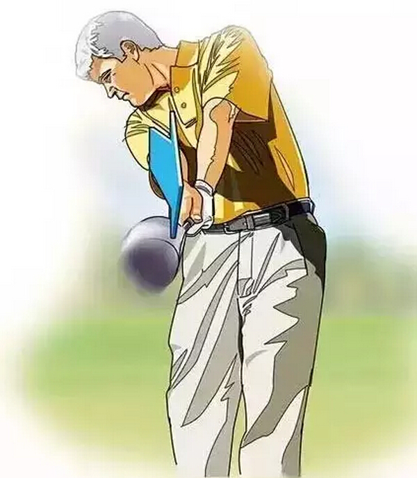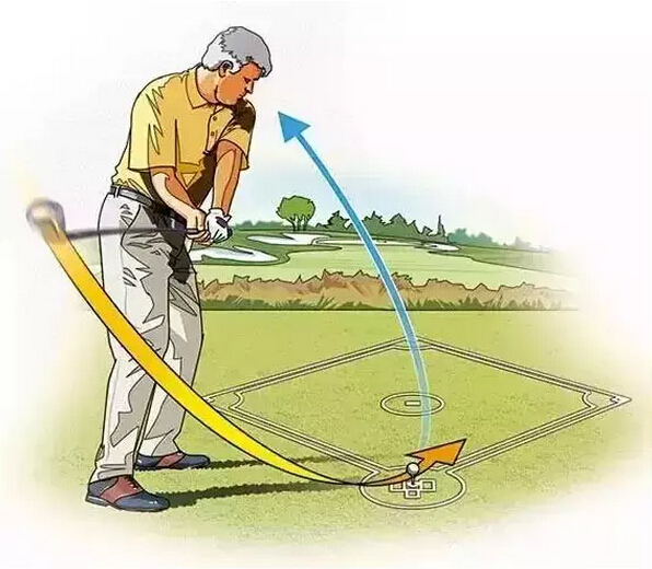 这有助于前臂自然地转动,右前臂转至左前臂上方,从而使杆面保持垂直。如果你试图在触球过程中使杆面保持垂直,杆面很有可能开放,打出推击球或右曲球,使球飞进长草区。要做出自由的挥杆。
