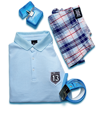 浅蓝色T恤、蓝色腰带 Sligo北京专卖