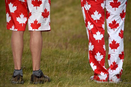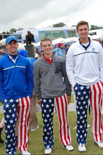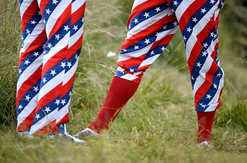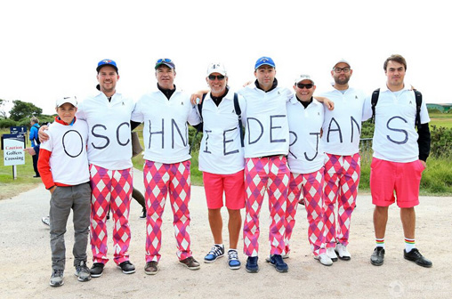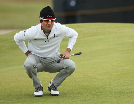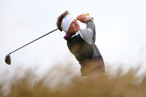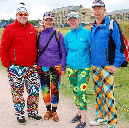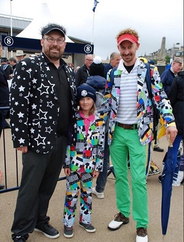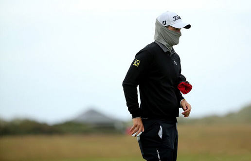 大满贯赛-第144届英国公开赛首轮比赛结束在大风中的圣安德鲁斯老球场结束。阴冷的天气再加上球员们灰白或黑色系的着装,让比赛画面看起来略显荒凉,但也有一些让人眼前一亮(惊)的穿着,为比赛增添一些色彩。