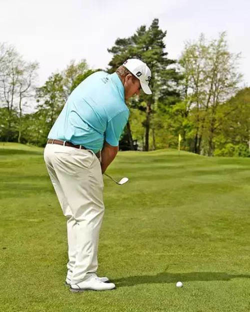100码以内:为什么这个距离更注重感觉巡回赛球手有多种不同的劈杆打法。有时,我们会将球放在靠近后脚的位置来打出较低弹道的球。有时我们在击球时会保持双臂不转动来减少旋转。对于大多数球手来说,劈杆关键在于形成稳定的动作。这就意味着,需要减小双脚间距离,将下半身瞄向目标的左侧,稍微向下握一点球杆。做了以上的调整后,需要注意保持好的挥杆节奏并完成收杆动作。