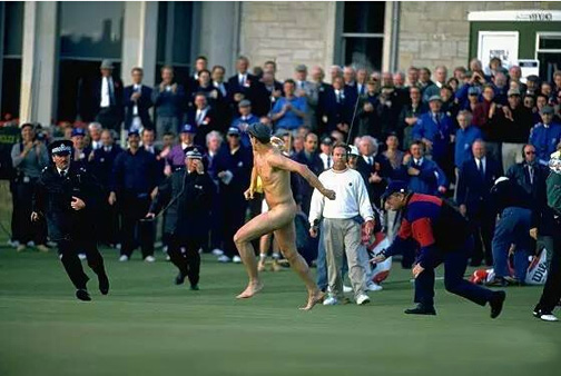 至今,英国公开赛已经有9年没有裸奔的故事了。不知是裸奔者淡出江湖了,还是R&A的安保措施更严了?
