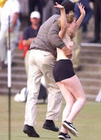 2000年英国公开赛,还有一位裸奔女郎,可惜因长相身材欠佳未引起轰动