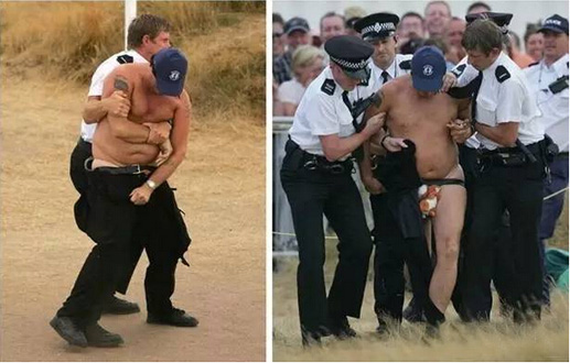 2006年英国公开赛的这位裸奔者可能是最不成功的一位,被警察逮着时,他的衣服只脱了一半。但在带走的过程中,他仍然坚持脱下了裤子,真是“勇气可嘉”!
