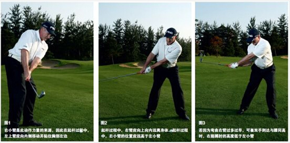 力量不够、球路偏差或是杆面指向错误这些都与上杆时右臂的动作有着密切的关联。