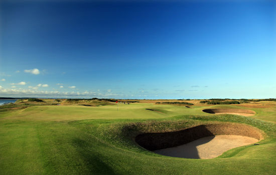 距离绝对不会对选手造成障碍,但这个174码的短三杆洞在5年前的英国公开赛上排在最难打的第四位。这个球洞的妙处就在于守护果岭的两个沙坑——位于果岭前端的Strach沙坑和位于左上方的Hill沙坑,打好的秘诀是不惜一切代价避开这两个沙坑。因为果岭上的落球点不多,加上果岭从后往前倾斜,打短会进Strach这个罐状沙坑,打偏会掉进12英尺高的Hill沙坑。有个高尔夫笑话讲的是:两兄弟打球分别打进这两个沙坑,推了10杆两人只是交换了沙坑的位置继续打。