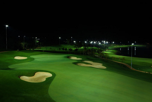 球场由美国著名的JFO设计公司设计,球道总长7669码,整个球场融湖泊、丘岭、平原三景于一体。