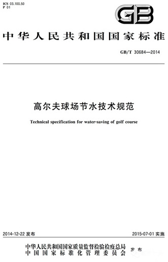 国家标准《高尔夫球场节水规范》(GB/T 30684-2014)于2015年7月1日正式实施。这是促进高尔夫走上依法依规的道路取得的一项实质性进展。