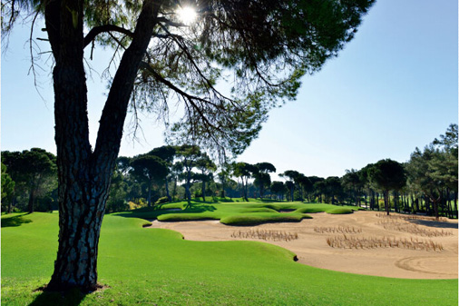 凯末尔俱乐部是土耳其国家队的训练基地, 球场品质可见一斑。球场是森林与花园风格的结合体。前9洞在遮天蔽日的树林中穿行,后9洞被色彩缤纷的樱树、梨树装点着,置身其中,如同沐浴花海。开局洞为球场定下了欢乐的度假基调。高大的松树直插云霄,不知名的花儿装点球道,不由得心情大好。全场难度系数第一的3号洞如同一曲变奏,提醒球手不可掉以轻心。站上发球台,大上坡球道将果岭完全屏蔽,只能盲打。更可怕的是,两侧高、中间低的坡形球道在200米处猛然右曲,这无疑是一个需要精确落点的4杆洞。