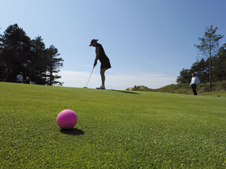 作为法国国家自然保护区,美人沙丘高尔夫俱乐部(Le Club de Golf Belle Dune)处处保持了原始的自然风貌。优质的气候和土壤保证球场的完美状态,同时融入了美丽的巨型沙丘,在打球的同时听的见大海的喝彩声看的见弗吉尼亚鹿的欢呼,还可以随手采摘素称维生素C之王的沙棘果子。