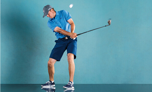 切球的关键在于杆头要在触地前击到球。如果杆头不巧在球位后方着地,或许还能侥幸降球打起来,但真正需要的是紧实的击球。要感觉在击球时杆头是向下运动的。将球位后置与身体重心前倾结合起来,才有机会打出漂亮的切球上果岭,并向着球洞滚去。