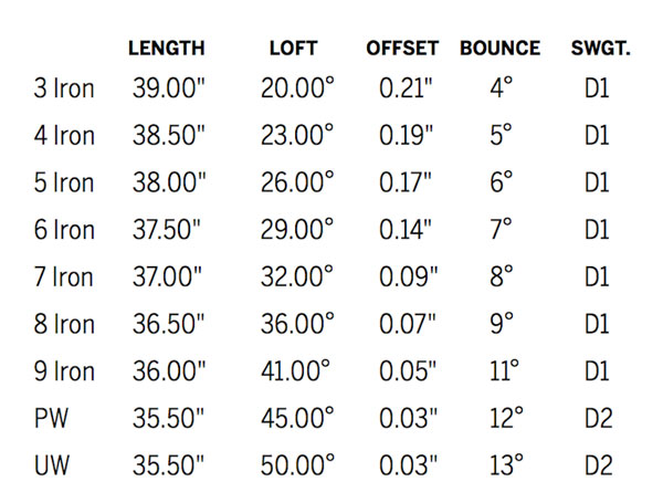 与i25铁杆一样,i铁杆使用渐进型设计,这代表着随着杆号变小,杆面宽度会变长,底部更宽,杆面后移会更多。这代表着长铁会更加好打,而相对来说短铁则有较窄的杆面,较薄的底面,较少的杆面后移这会让短铁更精准。