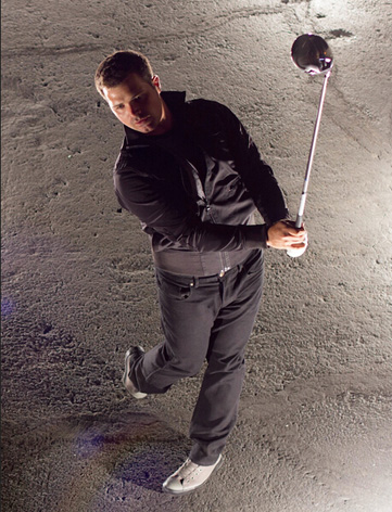 实现强力挥杆的另一个标志是收杆时将杆身轻放在脖子后部。这个动作有点过火,但那种流畅的感觉的确能够加快挥杆速度。另外,收杆时检查一下你的握杆动作。依然稳稳地握住球杆?果真如此,那证明对快速挥杆已经实现了很好的控制。