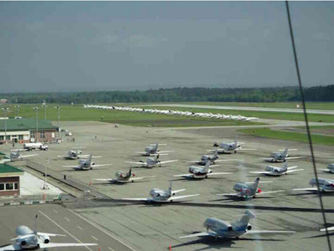 今年的美国大师赛又让奥古斯塔地区的机场工作人员伤透了脑筋,这个平常只能容纳200架飞机的小机场,在大师赛期间却要应付3000架私人飞机的起降任务。为此,很多飞机不得不停到机场以外的地方,乘客需要在滑行跑道上下飞机。美国另一项能让私人飞机大规模聚集的比赛是超级碗,在新奥尔良比赛期间有 600架私人飞机。但相比之下还是高尔夫界的土豪多,去年大师赛也有2000多架私人飞机。
