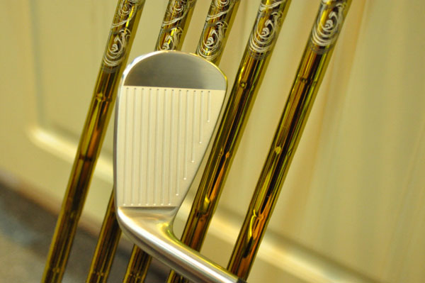 金灿灿,银灿灿,AF-303配了Design Tuning涂装的岛田Tour-Lite加上金银色限量版IOMIC握把就是这个效果。客户的铁杆握把用了金色限量版,木杆用了银色限量版,效果非凡。