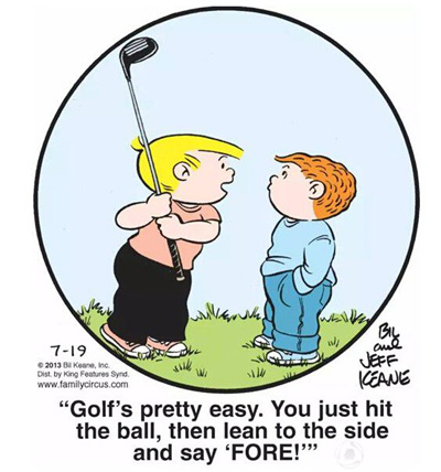 ▲“高尔夫其实相当简单。你只需要击一下球,然后站在边上大喊——‘看球!’ ”